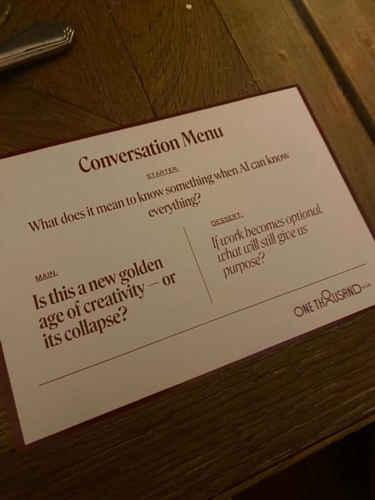 OneThousandClub believes that the magic of connection doesn’t lie in the wine or playlist, but instead in the design. In the dinner table and dimmed likes that make sharing ambitions, secrets, and laughter, easier, and more personal.